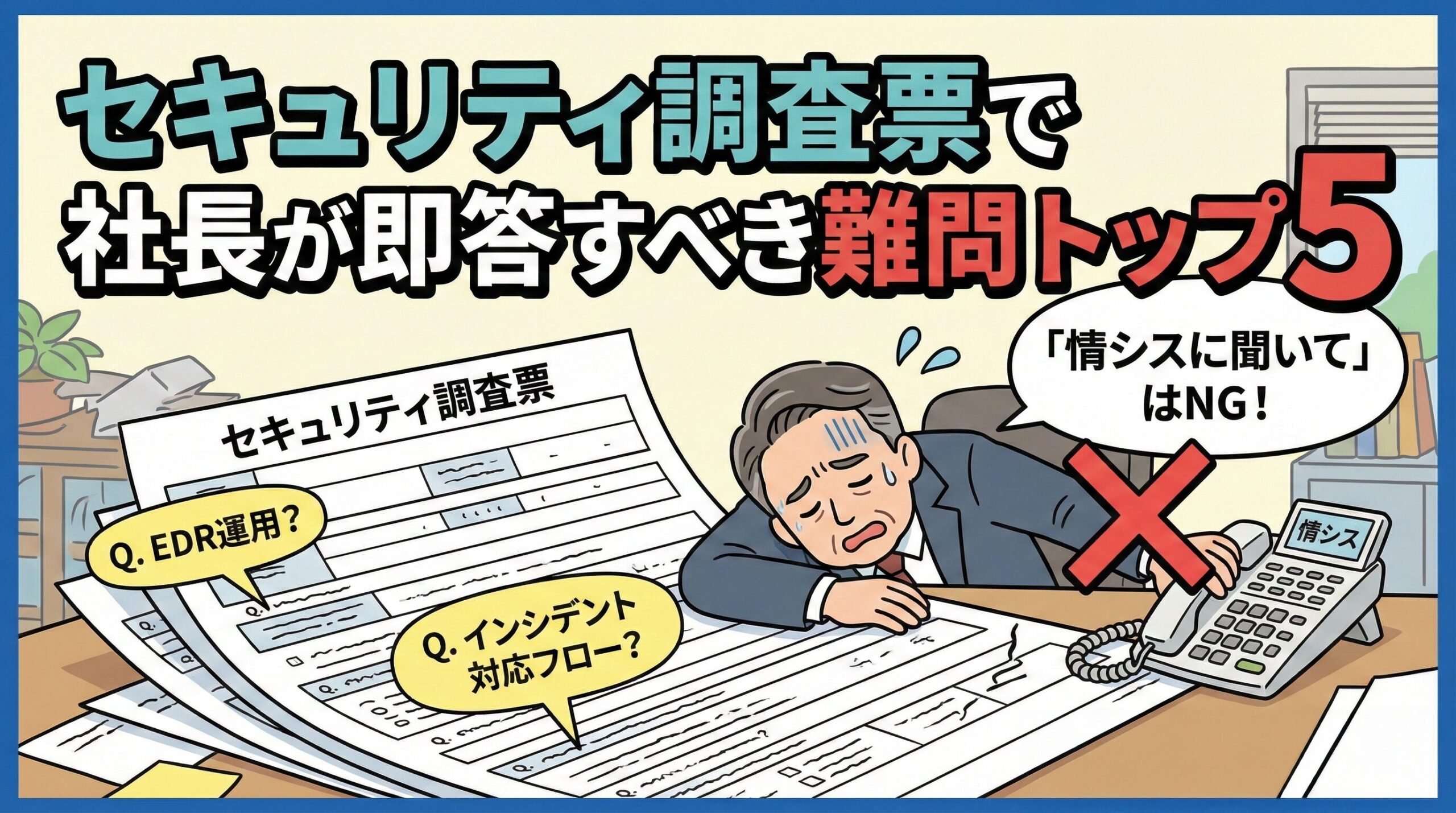 「情シスに聞いて」はNG。セキュリティ調査票で社長が即答すべき難問トップ5