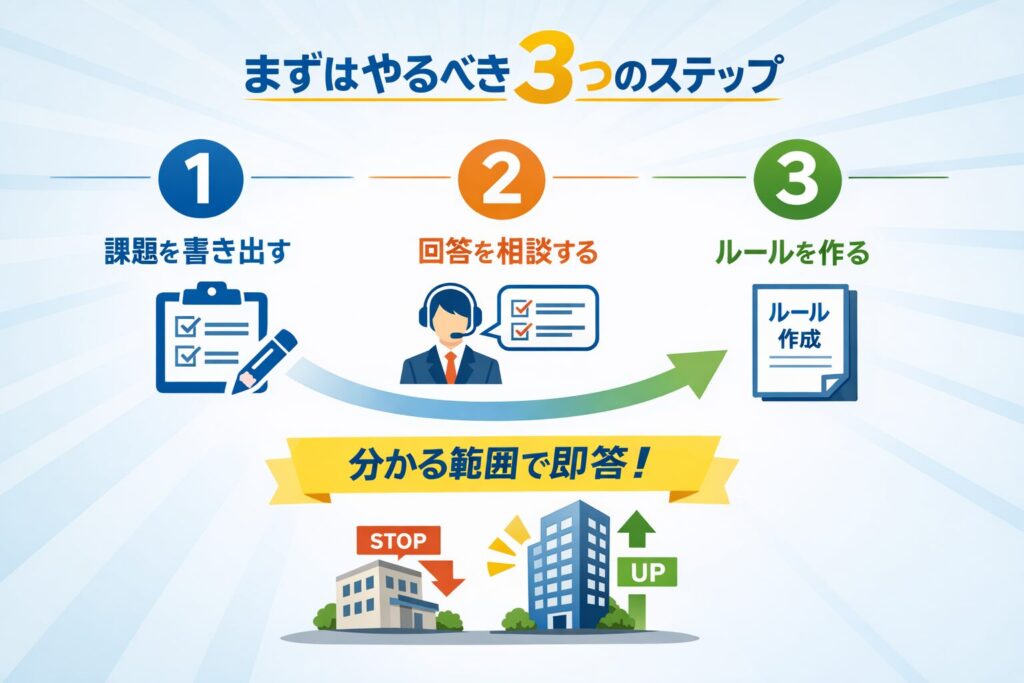 「口頭のみ」「各自判断」は危険判定になりやすいです。