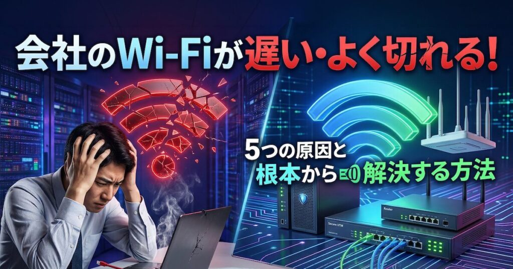 「会議始めます」って言った瞬間に、Wi-Fiが重くなる。 あれ、正直ヒヤッとしますよね。オンライン会議が固まる、資料が開かない、音声が途切れる。これ、取引先がいる場面だと、一発で「この会社、大丈夫か?」って思われるポイントです。 しかも厄介なのが、「普段は普通に使えてる」こと。だから原因が分かりにくい。現場でも何度も見てき...