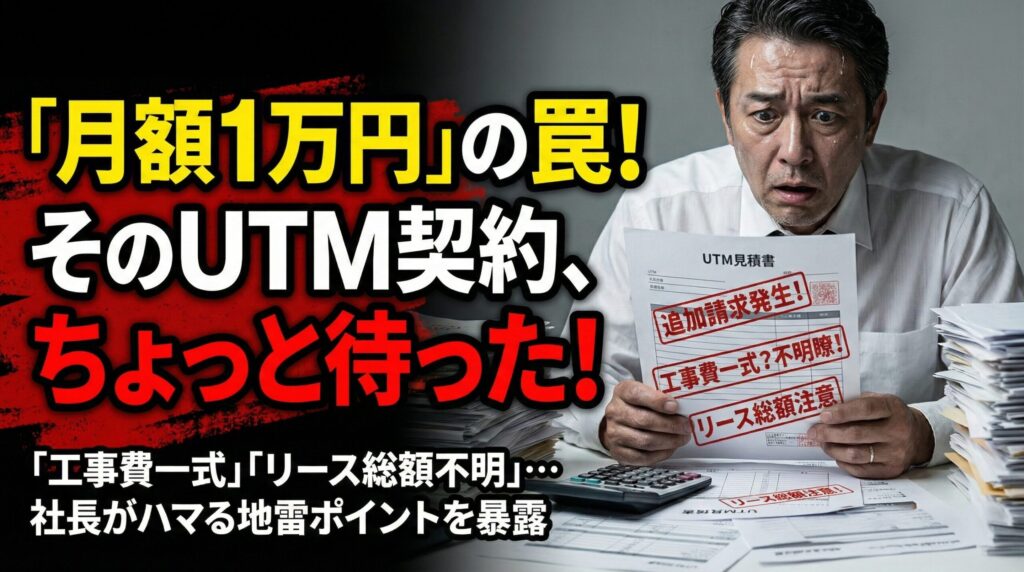 「月額1万円なら安いな。これで安心か」 正直、この一言からトラブルが始まるケースを、現場で何度も見てきました。導入後に追加請求が来て顔が青くなる社長、想定外の工事で業務が止まりそうになる会社。どれも珍しい話ではありません。 UTMの見積書で、社長がよく感じているモヤモヤは、だいたいこの辺です。 月額は安いのに、初回請求がや... -