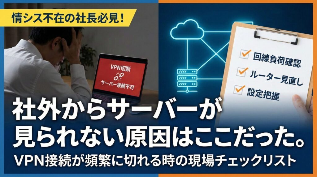 「すみません、今VPNつながらなくて…」 テレワーク中の社員から、こんな連絡が来た瞬間。正直、胸の奥がヒヤッとしませんか。 最初の1回目なら、まだいいんです。「たまたまかな」「回線の調子かな」で済ませられる。 でも、これが週に何回も続く。社員によってつながったり、つながらなかったり。朝はいけたのに、午後はダメ。 このあたりか... -