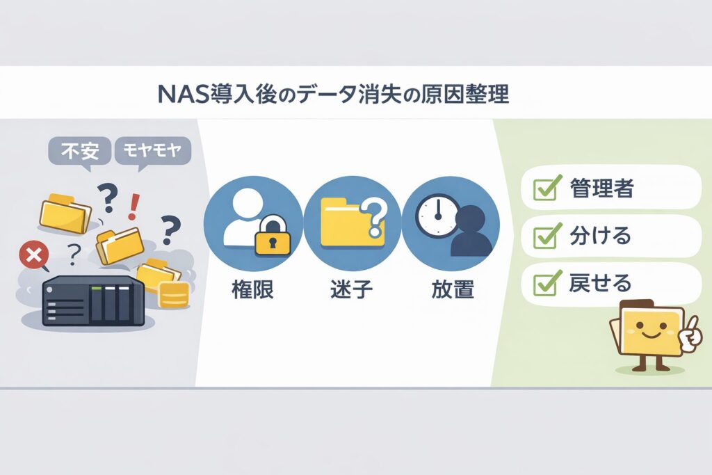 NAS導入後に起きがちな「データ消失の本当の原因」と、社長が今日確認すべきポイントを整理します