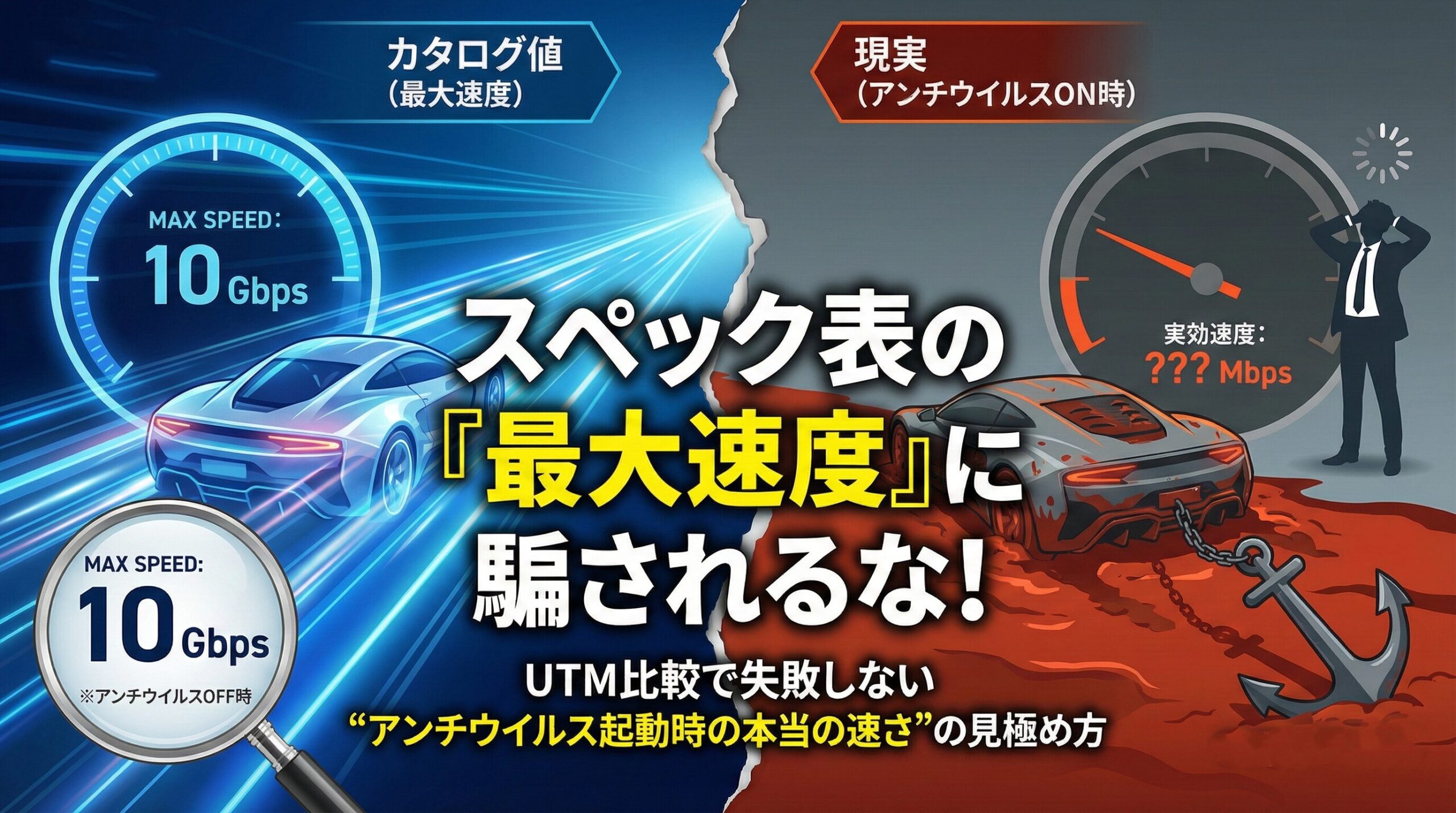 スペック表の「最大速度」に騙されるな!UTM比較で失敗しない“アンチウイルス起動時の本当の速さ”の見極め方
