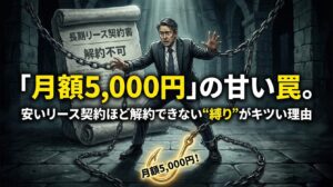「月額5,000円」の甘い罠。安いリース契約ほど解約できない“縛り”がキツい理由|中小企業のセキュリティ... 「月額5,000円で入れられますよ」 営業さんにそう言われると、正直ちょっとホッとしますよね。セキュリティ機器って高いイメージがありますし、「安く始められるならい...