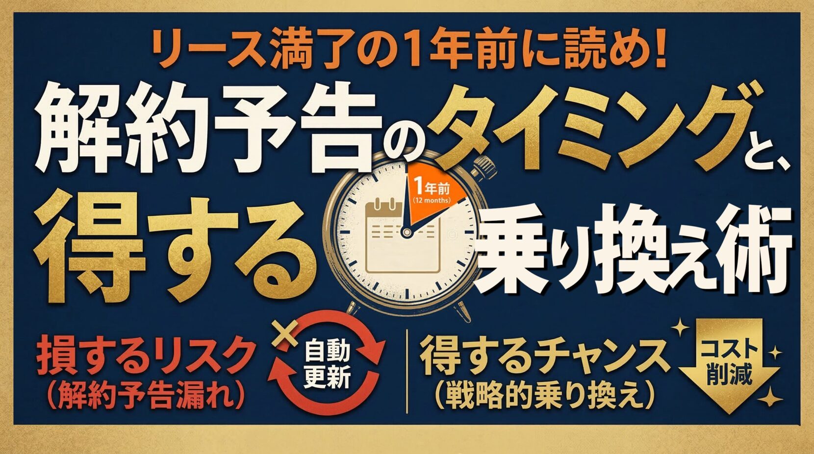 リースは満了日ではなく「1年前」が勝負です。社長、まず契約書を一度確認してみてください。